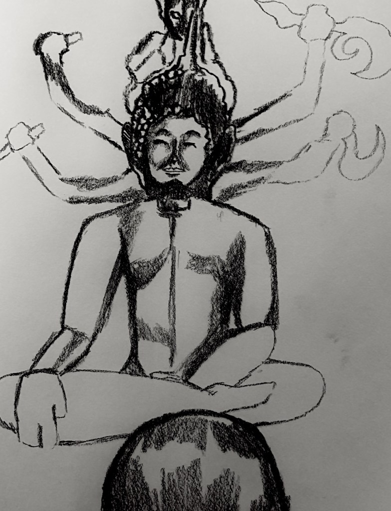 This concept uses a man and statues to create massive monument in combination with man made and man monumental as the subject. This is in many ways close to the mundane being made monumental, the main idea to get across is the scale of these man made objects. The statues will be scaled even larger than if not just as large as the planet. I would like to create the prospective of a dominating figure above the planet with a bit of a meditative vibes added to look like something on a cosmic scale.